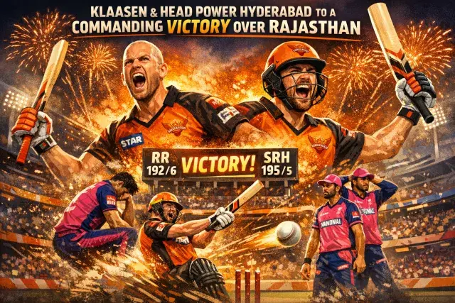 A composed performance with the bat carried Sunrisers Hyderabad to a five-wicket victory over Rajasthan Royals on Sunday evening at the Rajiv Gandhi International Cricket Stadium in Hyderabad, where conditions tilted decisively in favour of the side batting second. Rajasthan posted 192 for 6 in their allotted overs, a total that looked competitive under the lights — until Heinrich Klaasen and Travis Head rendered it insufficient. Hyderabad reached 195 for 5 with more than an over to spare, extending their winning momentum in the current campaign.